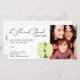 Ett skuret grönt äpple lägger till dimension till detta Rosh Hashanah-fotokort. L'Shanah Tovah står ovanför i ett grovt skrivstil med de hebreiska bokstäverna under. Lägg till ett personligt meddelande nedan och ditt eget foto till höger. Finns tillgängligt med matchande produkter.