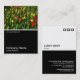 En mall för visitkort med en vit svart, nedre halva. Den främre designen innehåller ett foto eller en teckning i den övre halvan. Samma tema upprepas på baksidan utan bilden, vilket ger utrymme för annan information och ytterligare anpassning. De tre fyrkantsmotiven som används som dekorationsfunktion på baksidan kommer från en av Zazzles användbara bild typsnitt och kan användas som dekorationsfunktion eller ersättas med din egen logotyp eller dekoration.