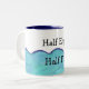 Halv tom, halv Fullt Mugg med vår målade texturerade blå bakgrund som når halvvägs uppåt (eller nedåt) mugg. Vilka är du? En halv fullt eller en halv tom person? Optimist eller pessimist? Beslut, beslut. Justera din attityd i dag och köp en halv tom, halv Mugg i Fullt i dag!