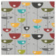Halva måne mönster i halvsekel liknar ett blommönster i färger av mörk röd, svart, guld, teal och avokado-grönt med lätt grått med bra linjer.