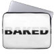 En visuell pjäs på ord halvbakad. Bärbar fodral för en kock eller kock. Bärbara höljen med en lek på ord. Chef-gåva. Grafik som visar halva ord "BAKED".