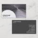 En visitkortsmall med en vit halvcirkulär panel i grund lämnat för ditt företag namn och affärstyp. Den halvcirkelformade panelen placeras över en bild- eller teckningsbakgrund (som också kan ändras). Namn och andra kontaktuppgifter på motsatt sida.