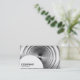 En visitkortsmall med en vit halvcirkulär panel i grund lämnat för ditt företag namn och affärstyp. Den halvcirkelformade panelen placeras över en bild- eller teckningsbakgrund (som också kan ändras). Namn och andra kontaktuppgifter på motsatt sida.