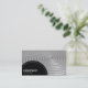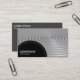 En visitkortsmall med en svart halvcirkelformad panel som dekoreras med en vit prickad linje i grund lämnat för ditt företag namn och affärstyp. Den halvcirkelformade panelen placeras över en bild- eller teckningsbakgrund (som också kan ändras). Namn och andra kontaktuppgifter på motsatt sida.