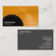 En visitkortsmall med en svart halvcirkelformad panel som dekoreras med en vit prickad linje i grund lämnat för ditt företag namn och affärstyp. Den halvcirkelformade panelen placeras över en bild- eller teckningsbakgrund (som också kan ändras). Namn och andra kontaktuppgifter på motsatt sida.