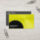 En visitkortsmall med en svart halvcirkelformad panel som dekoreras med en vit prickad linje i grund lämnat för ditt företag namn och affärstyp. Den halvcirkelformade panelen placeras över en bild- eller teckningsbakgrund (som också kan ändras). Namn och andra kontaktuppgifter på motsatt sida.