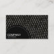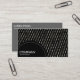 En visitkortsmall med en svart halvcirkelformad panel som dekoreras med en vit prickad linje i grund lämnat för ditt företag namn och affärstyp. Den halvcirkelformade panelen placeras över en bild- eller teckningsbakgrund (som också kan ändras). Namn och andra kontaktuppgifter på motsatt sida.