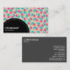 En visitkortsmall med en svart halvcirkelformad panel som dekoreras med en vit prickad linje i grund lämnat för ditt företag namn och affärstyp. Den halvcirkelformade panelen placeras över en bild- eller teckningsbakgrund (som också kan ändras). Namn och andra kontaktuppgifter på motsatt sida.