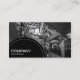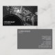 En visitkortsmall med en svart halvcirkelformad panel som dekoreras med en vit prickad linje i grund lämnat för ditt företag namn och affärstyp. Den halvcirkelformade panelen placeras över en bild- eller teckningsbakgrund (som också kan ändras). Namn och andra kontaktuppgifter på motsatt sida.
