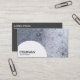 En visitkortsmall med en vit halvcirkulär panel i grund lämnat för ditt företag namn och affärstyp. Den halvcirkelformade panelen placeras över en bild- eller teckningsbakgrund (som också kan ändras). Namn och andra kontaktuppgifter på motsatt sida.