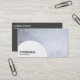 En visitkortsmall med en vit halvcirkulär panel i grund lämnat för ditt företag namn och affärstyp. Den halvcirkelformade panelen placeras över en bild- eller teckningsbakgrund (som också kan ändras). Namn och andra kontaktuppgifter på motsatt sida.