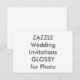Anpassade HALVGLANS Bröllopsinbjudningar - 5” x 3,5". Ett tunt, slätt glansigt papper designat för fotoframställning med optimal färgnyans, idealiskt för fullfärgsutskrift. 40% återvunnet material efter konsumentledet. 110lb, 12,5 punkter tjock kartong. TILLVERKAD I USA.