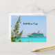 En karnevalkryssningfrakt anslutas av kusten av halvmånen Caye i Bahamas