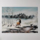 Snygg Oljemålning av älk i snö med berg. Art av David E Paul. Skriv ut David oljemålningar.