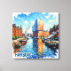 Glowing with blue water, warm brick warehouses, and the sculptural silhouette of Hamburg’s famed concert hall, this canvas art captures the city where maritime heritage meets modern design. Boats drift through the canal as golden reflections ripple beneath a bright northern sky, creating a scene rich in travel nostalgia, harbor romance, Speicherstadt charm, HafenCity energy, and elegant urban calm for hotels, offices, or refined living spaces.