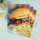 Närbild på läcker färsk hamburgare med ost och bacon