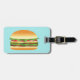 Den här bagagetaggen har en utsökt tecknad som illustrerar en hamburgare. Burgaren är gjord av kött, sallat av grönt, rödtomater, lök, ostsegment och några få picklor. Bunten ser nybakad ut och har några sesamfrön ovanpå den. På andra sidan finns det ett textområde i anpassadet för namn och adress.