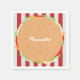 En hamburgare med alla putsningar. Ställ in på en röd och vit strimlad bakgrund. Anpassa om du vill.