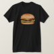 Desteis illustration av en hamburgare som har en sesamfröbun som är fylld med ost, sallat, nötkött, tomat, ketchup och pickles.