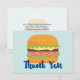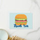 Ett tackkort med en illustration av en enkel hamburgare. Sallat, tomat och köttpotatis. Enkel och utsökt. På baksidan av kortet finns ett meddelande som kan anpassas eller lämnas som det är.