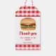 Hamburger on Red Gingham Birthday Tack Presentetikett