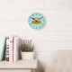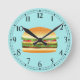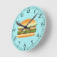 Den här klockan har en utsökt tecknad som illustrerar en hamburgare. Burgaren är gjord av kött, sallat av grönt, rödtomater, lök, ostsegment och några få picklor. Bunten ser nybakad ut och har några sesamfrön ovanpå den. Ansikte är tillverkat av snyggtens svarta nummer.