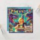 Hamish firar sin födelsedag. Hälsning på kortet är Grattis på födelsedagen Hamish". På baksidan av kortet finns en liten version av samma bild, med gott om utrymme för skriva av ett meddelande. Tillverkad med hjälp av AI Bing (CoPilot).