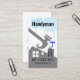 Utformningen har en takkonstruktion för hemmet som snart börjar reparera handymannen. Lutningen på toppen rymmer "Handymannen" i namn som du kan ändra. Mot basen har ni den mobila kontakten och ert prestigefyllda namn. På andra sidan, i ett vitt omslag, är överkanten en logotyp av handyman verktyg som du kan använda i guld. Detta följs av ditt prestigefyllda namn, kontaktinformationen och ett slogantaggradsalternativ för att publicera dina tjänster. Ett underbart attraktivt kort för handyman och byggnad till användan.