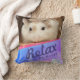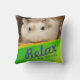 Roligt och söt hamsters kudde. Illustrerad med en vacker brun och vit robohamster. Hon är har en söt rosa näsa och långa vita whisky. Kudden har ett budskap om att "slappna av och vara Lycklig". De färgstarka geometriska mönstren ge vid kudden ger ett extra starkt utseende.