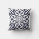 Elegant marin blå och vit hampton stil-dyna med en marockansk platta på framsidan och baksidan