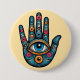 Symbolen för skydd och bra Hamsa Hand med och öga art färg illustration runda knappar