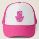 Dekorativt stiliserat handdesignlock av rosa Hamsa. Bright rosa Hand of Hamsa design.