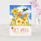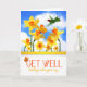 Att ge dig bra önskemål på vägen som du känner dig bättre i dag är det trevliga budskapet på den här daffodila trädgården i färglös gult, orange och grönt med en hummingbird, fjärilar och ett målat moln på blå himmel.