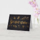 En underbar, bra hälsning i digitalt skapat guld löv ser botaniskt inslag parad med elegant manustypografi, allt på djup kol - nästan svart - bakgrund.