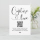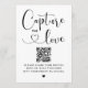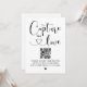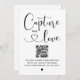 Tecknet Kärlek bröllop har ett modernt kalligrafiskript med hjärtaccenter, parat med en QR-kod för anpassningsbar och enkla skanningsinstruktioner för gästerna i bröllop. Svartvit färg kan ändras.