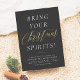 Vänner eller kolleger från inbjudan för att fira säsongen med de här elegant helgdag-cocktail-inbjudningarna! Utformningen har en svart bakgrund med "ta med dig spriten!" i feta, vita, kursiva versaler med "julen" i chic guld med dina evenemangsuppgifter i klassiskt serif-typografi under. Kort som går tillbaka till ett festivt rött färg med en vit deco-snöflake mönster. Anpassa det här kortet med din händelsetyp, skapar perfekt för party, julmiddagar, helgdag, företagshändelser, helgdag cocktail party och mycket annat! Kontakta mig gärna om du har frågor - jag är lycklig för att hjälpa till!