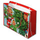 Att få Julgran i stort gift Bag i ljust, levande färg visar tre barn som leker stora leenden medan de tar hem Julgran.