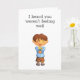 Det här söta kortet har en bild av en liten pojke som har en bukett med blommor. Pojken har brunt hår och är klädd i brunt kort och en blå skjorta. Han bär en bukett med daisy. Hela texten kan redigeras efter dina behov i kostym.