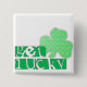 Modern design med typografiskt brev: "Hämta Lucky" (grönt och genomskinlighet digital effekt) + ett stort halvgenomskinligt klöver med små schampar inuti och vit bakgrund. Knappen perfekt fyrkantig för St Patrick. Matchande produkter.