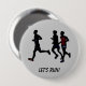 Konstgjord silhuett med tre springer i gång trycks på anpassningsbarnas sportknappar. kärlek om att springa med Låt oss Springa på sportknappar. Det är enkelt att anpassa texten i mallformuläret. Tack för att du shoppade på CherylsArt på Zazzle.