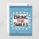 "Hämta lejonerna" är en söt textdesign i blått med svart och röd text, tillsammans med en vit accentform och vita texturerade vita prickar runt den.