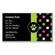 Mall för djuromsorg affärskort i en snyggt som innehåller en tass, textlayout och färg för svart bakgrund som du kan anpassa. Designat för affärskort som rör hundar, sällskapsdjur, eller veterinär.