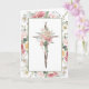 Det här Påsk-kortet har en rosa och vit vår-blomma gräns längs kant på en ljusvit bakgrund. I mitten finns en kor med en vår-blommigt bouquet. Insidan har en vers som säger: "Han är inte här, han är Risen, precis som han sa" med hälsning och ställe för att du ska kunna anpassa dig med ditt namn.