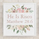 En elegant blommigt bukett av vattenfärgade rosor och elfenben ro ram i denna vackra religiösa Påsk poster. Risen är skriven i vacker persikofärgad rosa för den bibeln Matthew 28:6. Söt skriver ut för en kyrka eller kristen vän.