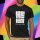 Han är stor, djärv pronouns i vitt på svart t-shirt. Bära dina uttalanden högt och djärvt. Lägg till ditt namn för den personliga beröringen.