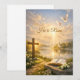 Dela hoppet och glädjen av uppståndelsen med detta fredliga kristna platta kort med ett rustikt träkors, en öppen bibel, mjuka vårblommor och duvor som flyger i soluppgångens ljus. Budskapet han är uppstånden firar Kristi uppståndelse och löftet om nytt liv. Detta platta kort är perfekt för påskhälsningar, kyrkobrev, församlingsutskick eller för att dela ett trofyllt budskap med familj och vänner.