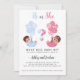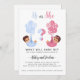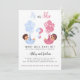 Den här söta genderna visar inbjudan med två vackra spädbarn snus i blått och rosa, flytande med ballonger. Anpassa all text för att lägga till namn, datum och information för en roligt och ett charmerande sätt för inbjudan nära och kära till din speciella dag. Perfekt för "han eller hon" temat gender avslöjar med en liten aning.