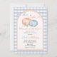 Han eller hon Pumpkin Blue Gingham Arch Gender Rev Inbjudningar