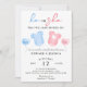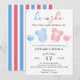 Perfekt för könsrevealeringsfester, denna inbjudan sätter tonen för en rolig och meningsfull sammankomst med familj och vänner. Denna söta design har en mjuk, minimalistisk design med pastellblå och rosa accenter, som symboliserar båda könen på ett subtilt och sött sätt.