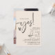 Inbjudan till fotoFörlovningsfest. Design innehåller typografiskript ""Han frågade henne: Ja!"" , party-detaljer i trendigets versaltext och fotot på baksidan.
